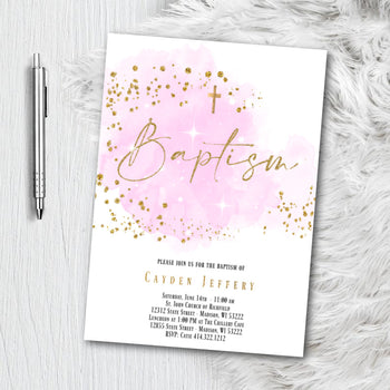 Baptism Invitation for Boy - Blue or Green and Gold Watercolor splash with Glitter Confetti - Printed or Printable Invites Baptism Invitation for Boy - Blue or Green and Gold Watercolor splash with Glitter Confetti - Printed or Printable Invites