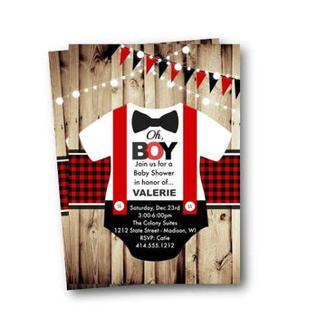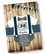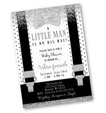 Gold Little Man Baby Shower Invitation - Black and White with Gold baby shower Lil Man Boy Onesie Bowtie invite flyer for boys