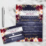 Fall Wedding Invitation Set with RSVP, Rustic Burgundy Floral Fall Wedding Invites Suite Gold Script Printed or Printable