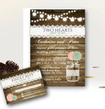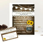 Sunflowwer Wedding Invitation Set with RSVP, Rustic Mason Jar, Floral Wood and Lace Country Barn Printed Yellow and Navy with Gold Invitations