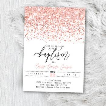 - Invitations with a “Glitter” effect do not come printed with actual glitter; this is a graphic effect that is printed to resemble glitter.