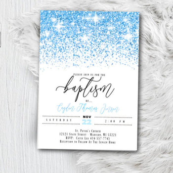 Baptism Invitation for Boy - Blue or Green and Gold Watercolor splash with Glitter Confetti - Printed or Printable Invites